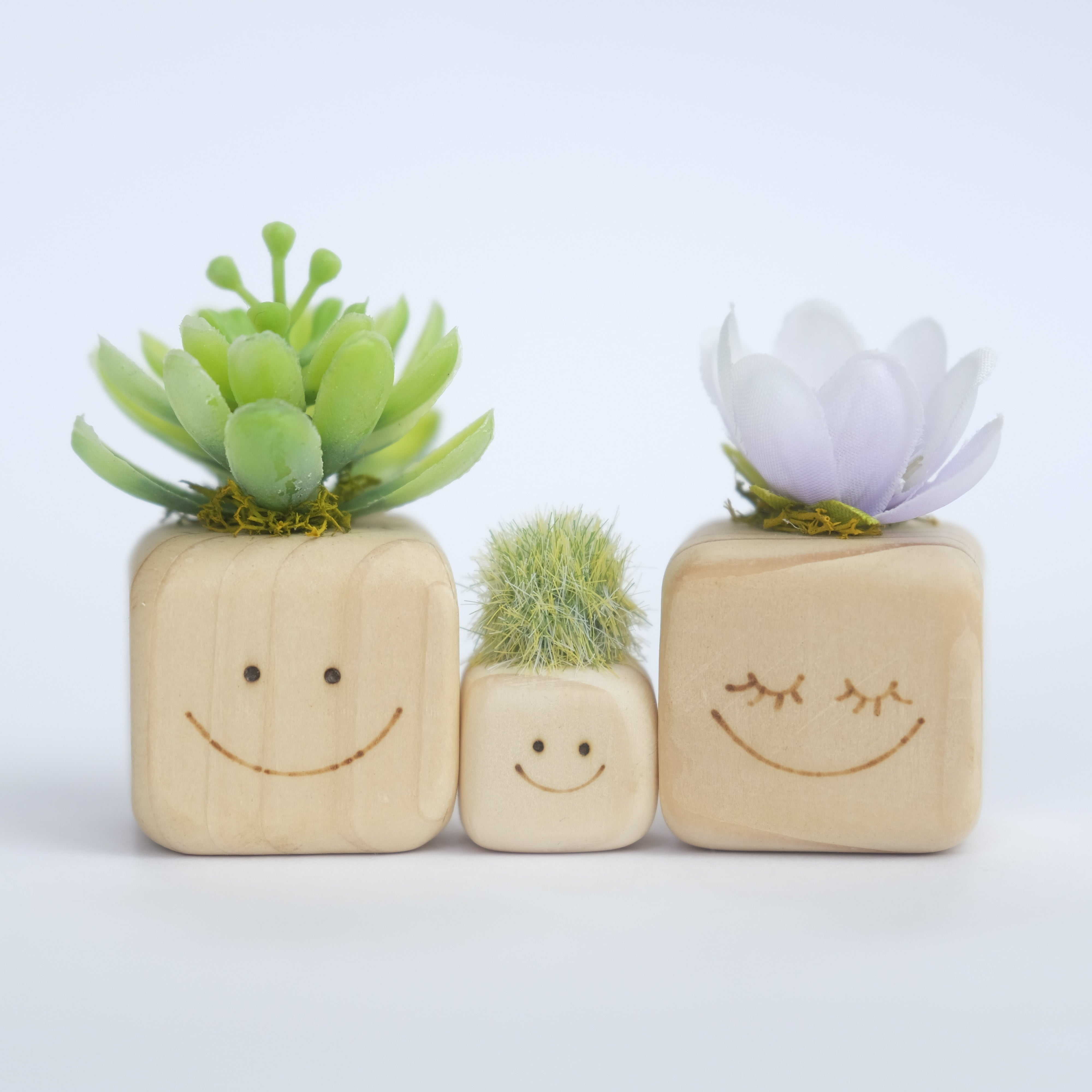 商品サイズ 【大キューブ】約3cm角 高さ 左 5.5㎝ 右 6.5㎝ 【小キューブ】約1.8㎝角 高さ 約3.5㎝ 商品名:カンナヘア 木の温もりと優しい笑顔が、そっと癒しを届ける「カンナヘア」 こちらは、親子仲良く寄り添う「カンナヘア親子3点セット」です。 国産ヒノキの製品端材を活かし、ひとつひとつ丁寧に手作りした小さな置き物です。 キューブの表面には、電熱ペンで手描きしたにっこり笑顔。見るたびに心が和む、ほっこりとした表情が特徴です。 髪の毛に見立てたポンポンは、ヒノキの鉋(かんな)屑を手作業で細かく割き、ふんわりと仕上げたもの。それぞれの形や質感を活かし、最後にハサミでヘアカットするように整えています。 ✔︎ カンナヘアの特徴 ✅ 国産ヒノキの製品端材と鉋屑を使用 ー 環境に優しく、木の温もりをそのまま活かした一点もの ✅ ヒノキの調湿・消臭作用 ー 自然素材の心地よさが暮らしに寄り添う ✅ 手書きのにっこり笑顔 ー 世界に一つだけの個性豊かな表情 ✅ 鉋屑ポンポンのヘアカット仕上げ ー 一つひとつ異なる髪型を楽しめる ✅ 水を霧吹きするとふんわり香るヒノキの癒し デスクや玄関にちょこんと置くだけで、ふっと心がほぐれる「カンナヘア」。 大切な方への贈り物にもぴったりです。 世界に一つだけの、あなただけの「カンナヘア」をお迎えしませんか? 商品名:カンナヘア親子3点セット 温かみあふれる木の作品が、親子の絆をさらに深める「カンナヘア親子3点セット」。 このセットには、国産ヒノキの製品端材と鉋屑を活かした、手作りのオブジェが含まれています。かわいらしい親子の仲良しキャラクターたちが、あなたの生活空間を優しく彩ります。各オブジェには、心和むにっこり笑顔が手描きされており、いつ見ても心がほっこりします。 大胆に形作られた髪の毛は、ヒノキの鉋屑を使ってふんわりと仕上げられ、各々の質感が楽しめます。最後にはハサミで整えられ、違った印象のヘアスタイルを提供してくれます。 ✔︎ カンナヘア親子3点セットの特徴 ✅ 国産ヒノキの製品端材と鉋屑を使用 ー 環境に優しく、素材の魅力をそのまま引き出した一点もの ✅ ヒノキの調湿・消臭作用 ー 自然素材が暮らしに寄り添う心地よい存在 ✅ 手書きのにっこり笑顔 ー 各オブジェが持つ個性豊かなキャラクター ✅ 鉋屑ポンポンのヘアカット仕上げ ー 親子それぞれのユニークな髪型の楽しみ ✅ 水を霧吹きするとふんわり香るヒノキの癒し ー お部屋に爽やかな香りをプラス 親子の温かい関係を象徴する「カンナヘア親子3点セット」は、リビングや子供部屋のどこにでもぴったりです。贈り物としても喜ばれること間違いなし! 世界に一つだけの、あなただけの親子の「カンナヘア」をお迎えしませんか?